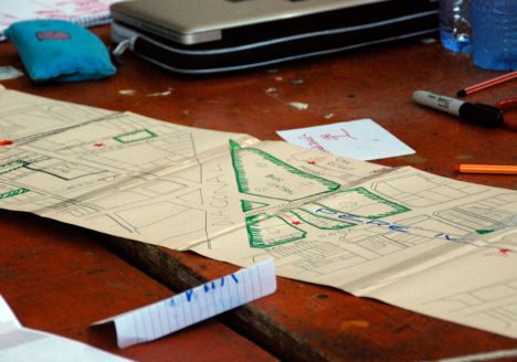 El taller planteó la intervención del patio trasero del Centro de Arte Contemporáneo de Quito (Ecuador), renombrado por lxs vecinxs como plaza La Pícara Juana.