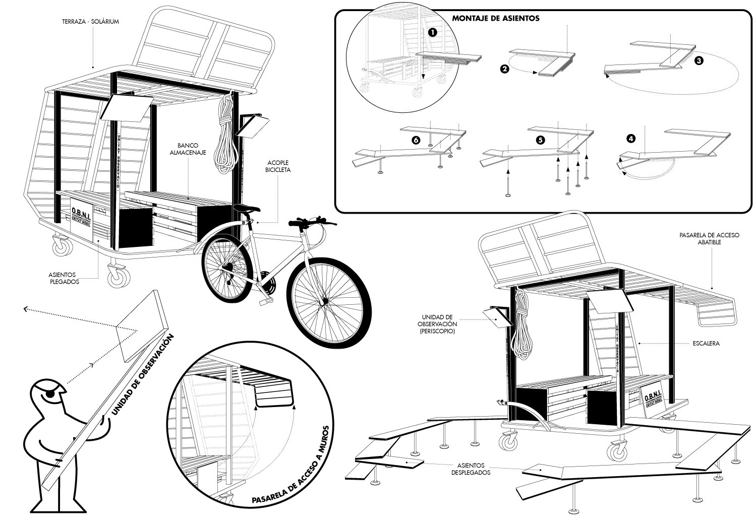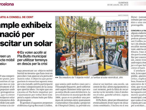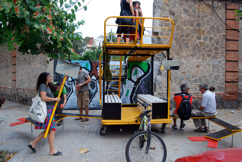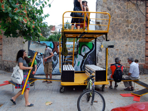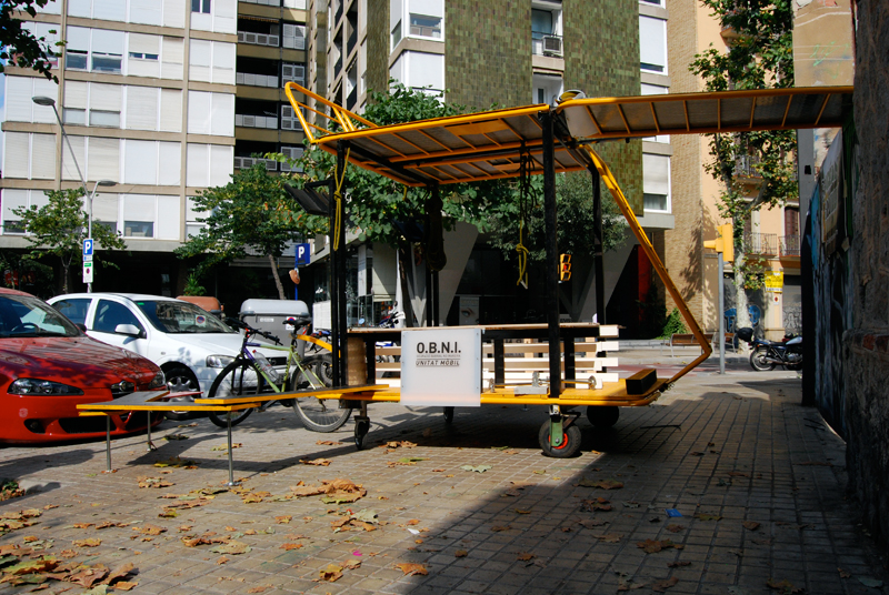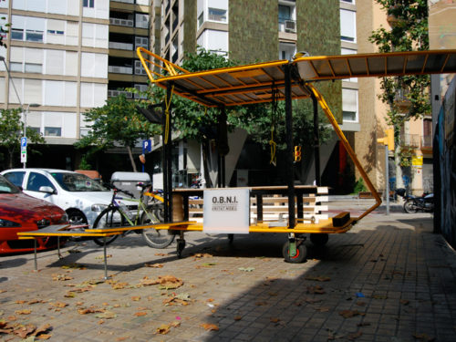 Del 16 al 21 de Julio estuvimos trabajando en el diseño y construcción de la Unidad Móvil O.B.N.I. [Ocupación Barrial No Invasiva] dentro del taller Dispositivos IN/OUT enmarcado dentro del proyecto ID Barri BCN de Idensitat, en colaboración con el máster en Diseño, Arte y Espacio Público de Elisava y el colectivo Recreant Cruïlles.