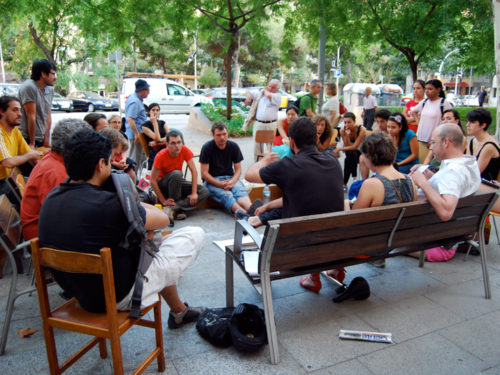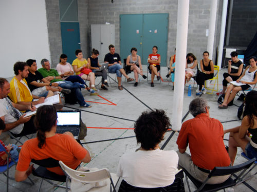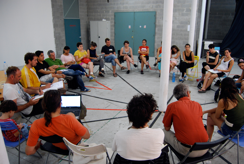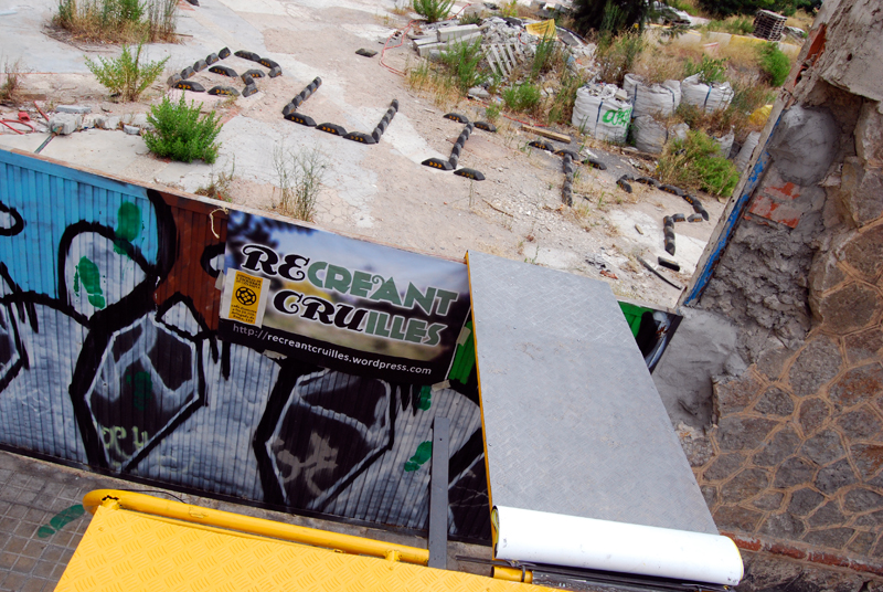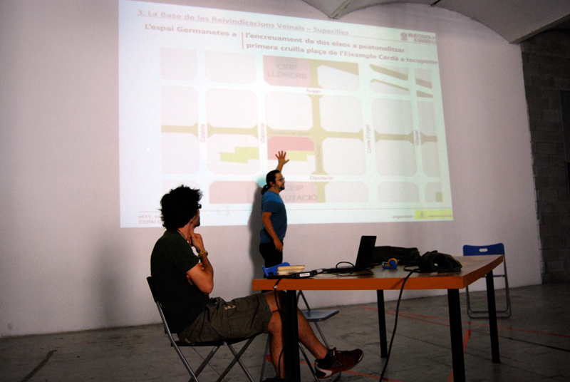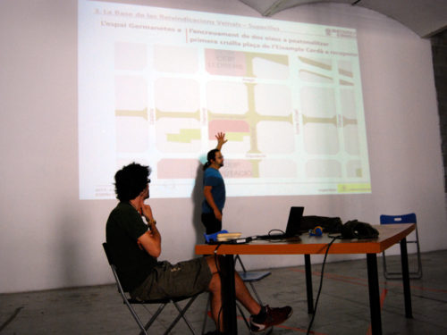 Como punto de partida para este taller se recoge y analiza toda la información y propuestas generadas por el grupo de Recreant Cruilles hasta la fecha que, tras una reunión con distintos representantes del colectivo y vecin@s, se empieza a perfilar el briefing del taller. También se mantiene una reunión con Rafael Balanzó (miembro de la Plataforma Salvem Vallcarca) y Marc Dalmau (La Ciutat Invisible y plataforma vecinal Recuperem Can Batlló), que nos explican sus casos de trabajo respectivamente, los modos y formas para alcanzar sus objetivos, la re-articulación del movimiento vecinal, los recursos, las estrategias, el tiempo y las energías necesarias para abordar este tipo de situaciones. Sus intervenciones generan un intenso debate posterior, sobre todo en las formas y en los modos. Surgen distintas líneas a seguir y se consensúa, la vía de primero la visibilización y después la acción in-situ, teniendo en cuenta al mayor número de agentes sociales del barrio.