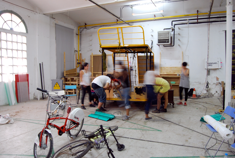 El taller se desarrolló en las instalaciones de Hangar, y cuyo objetivo fue dotar de infraestructura móvil y de visibilización al grupo de trabajo de Recreant Cruilles para la activación del solar de Germanetes, que les posibilitara realizar de una forma confortable sus actividades, asambleas, comunicar al resto del vecindario sus propósitos y generar puntos de visión y posibilidades sobre dicho espacio.